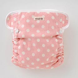 商品名:Wガーゼおむつカバー(ピンク) 商品番号:nishiki-01 サイズ:新生児55cm〜80cm(1歳半くらい) 表:綿100%、裏:ポリエステル100% 個装重量:50g 仕様:洗濯機洗い可能 乾燥機不可 製造:日本 価格:1,620円(税込)