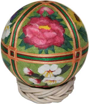 手まりの八面に様々な季節のお花のちぎり絵が作られています。